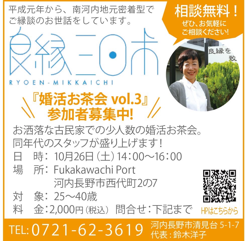 2019/09/28 10月26日婚活お茶会のお知らせ つむるさんに婚活お茶会のフード相談に行って参りました。南大阪の美味しいもので参加者の皆様をおもてなししたいです。美味しくて可愛いケーキ楽しみにして下さい!続々とご参加の方連絡頂いています。南大阪でお相…続きを読む 良縁三日市【河内長野市】 暮らし