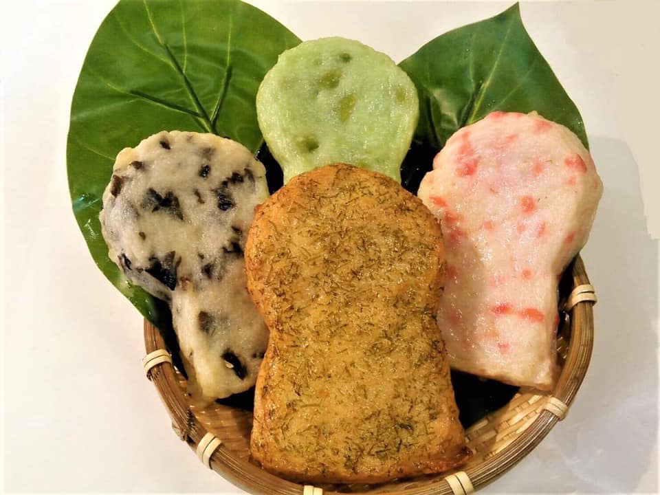 2019/08/15 KOFUN天 登場! KOFUN天は、紅ショウガ、枝豆、きくらげ、イカ、蓮根など全8種類。おやつやお酒のお供に、お土産にも喜ばれますよ♪1個 180円(税込) 手造りかまぼこ 味大【藤井寺市】 食べる