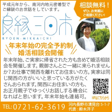 2020/01/11 真剣に結婚したい男性連絡お待ちしています。 長野えびすに行って来ました。帰って来ると早速新規面談のお電話以前お預かりしていました方からのご紹介ご紹介して頂けるのは嬉しいです。 これからも長く地道にコツコツとお世話していきます。この週末も難波、梅…続きを読む 良縁三日市【河内長野市】 暮らし