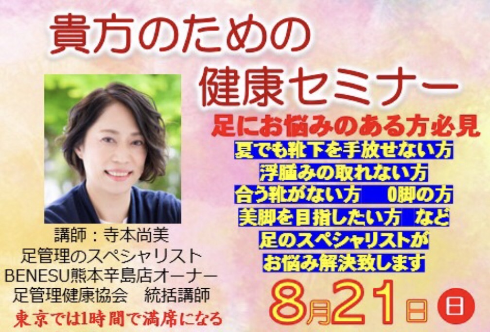 2022/06/16 足にお悩みのある方必見!足管理スペシャリストによる健康セミナー開催。 8月21日(日)13:30〜16:30堺筋本町にて開催。夏でも靴下が手放せない方、むくみでお悩みの方など、身体の不調を足から見直しませんか?なかなか席が取れないと有名な、足の専門家の先生の講義を受けら…続きを読む 足と靴の専門店 足からげんき【羽曳野市】 美容・健康