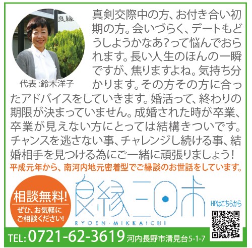 2021/06/25 お見合いはお写真が大切 6月最後の週末今年も折り返し早いです。お見合い後、交際になっても同じぐらいの気持ちで交際していくとは限りません。どちらかの方の気持ちが先に上がります。リズム、タイミング、気持ち先方仲人に聞いて、進み具…続きを読む 良縁三日市【河内長野市】 暮らし