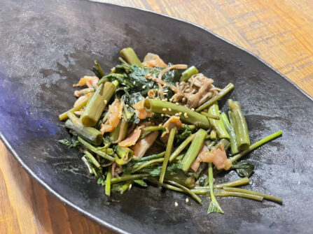 令和元年より、大阪の富田林にて無農薬野菜作りを始めました、百姓の嫁です。暑い日はスタミナも欲しいし、ビールも飲みたい!(笑)そんな時によく作るのが、シャキシャキ食感がクセになる空芯菜の炒め物。ベーコンとエノキを一緒に炒めれば旨みたっぷり、しかも5分ほどで完成! 冷蔵庫に材料があれば、サッと作れて食卓の主役になりますよ。