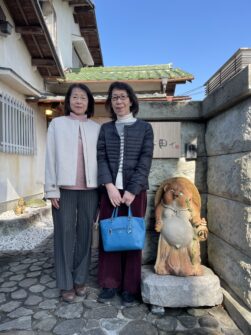 赤地に白抜きで「松阪牛」の文字が旗めく幟りがなければ、一見普通のお宅にしか見えない『藤田で』さん。門では信楽焼のたぬきがお出迎え。引き戸を開けて中に入ると、木彫りの立派な『松阪肉牛協會員』の置物が目を引きました。期待で胸が高鳴ります。