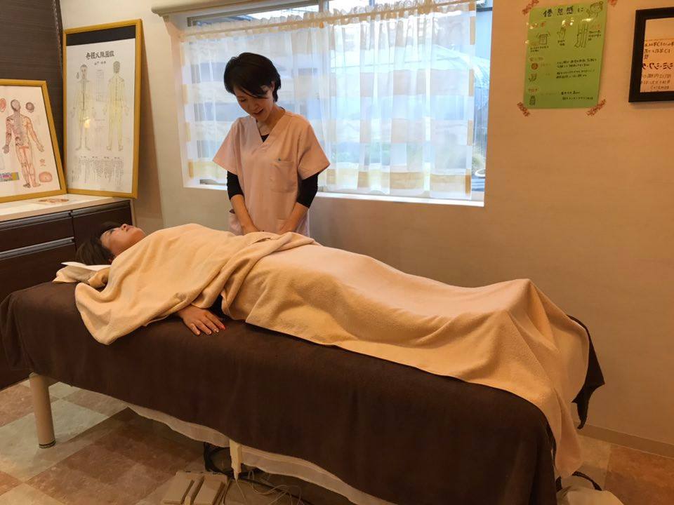 最初にカウンセリングがあり、現状の説明と治療内容をしっかり説明して頂いて治療スタート、トータル40分程で終了しました。鍼治療は初体験の私でしたが、安心して受けることができました。