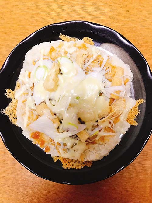 ちりめんじゃこと味噌ソースのお餅ピザ