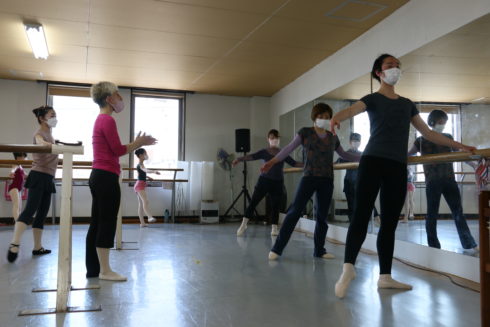 別室で着替えをし、バレエシューズを貸していただき、いざレッスン!経験者の方に立ち方や手の位置などを教えていただきました。