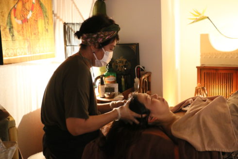めちゃくちゃ気持ちが良く、肩や首筋のコリがほぐされていくとだんだん深くリラックスしてきて、目の周りのツボ、頭のマッサージへと進んでいく内に、あまりの気持ち良さに意識が飛んでしまい、気がつけばヘナの塗布まで終わっていました。
